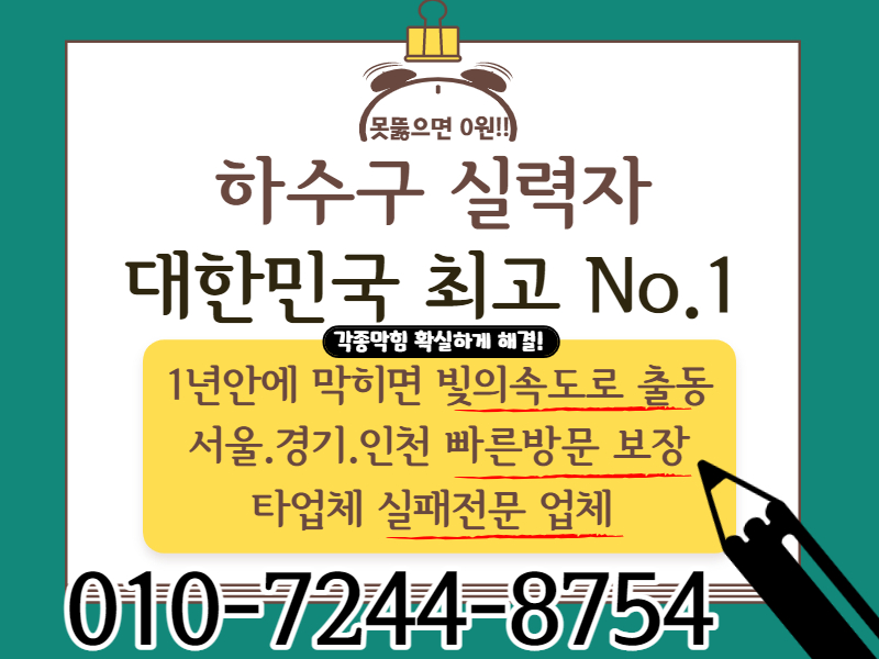 하수구뚫는 프로기사님들께서 남다른 안전한 손기술로 하수구 뚫는장비로 뚫어드립니다